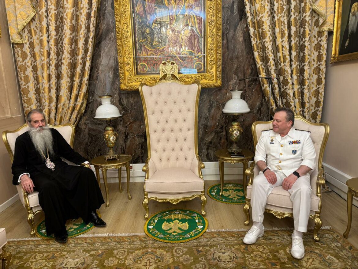 Ο νέος Αρχηγός του Λιμενικού Σώματος – Ελληνικής Ακτοφυλακής Αντιναύαρχος Λ.Σ. Τρύφων Κοντιζάς, επισκέφθηκε σήμερα Παρασκευή 23 Μαΐου 2025 στα γραφεία της Ιεράς Μητροπόλεως Πειραιώς στο «ΜΑΡΙΝΑΚΕΙΟΝ ΜΕΛΑΘΡΟΝ», τον Σεβασμιώτατο Μητροπολίτη Πειραιώς κ. Σεραφείμ, προκειμένου να λάβει την ευχή του και να συζητήσουν θέματα αφορούν το πρώτο λιμάνι της χώρας.