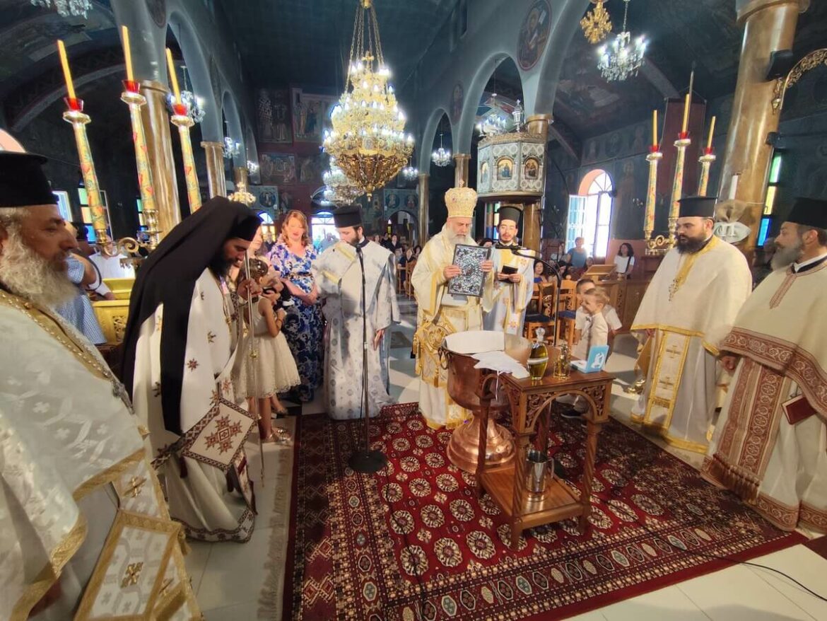Ο Σεβασμιώτατος Μητροπολίτης μας κ. Τιμόθεος, την Κυριακή των Αγίων Πάντων 15 Ιουνίου, χοροστάτησε στην ακολουθία του Όρθρου και τέλεσε τη Θεία Λειτουργία στον Ιερό Ναό Αγίας Παρασκευής Καρδίτσης κατά την διάρκεια της οποίας τέλεσε τα Μυστήρια του Βαπτίσματος και Χρίσματος του μικρού Παναγιώτη, υιού των π. Θωμά και Ευανθίας Κάια.