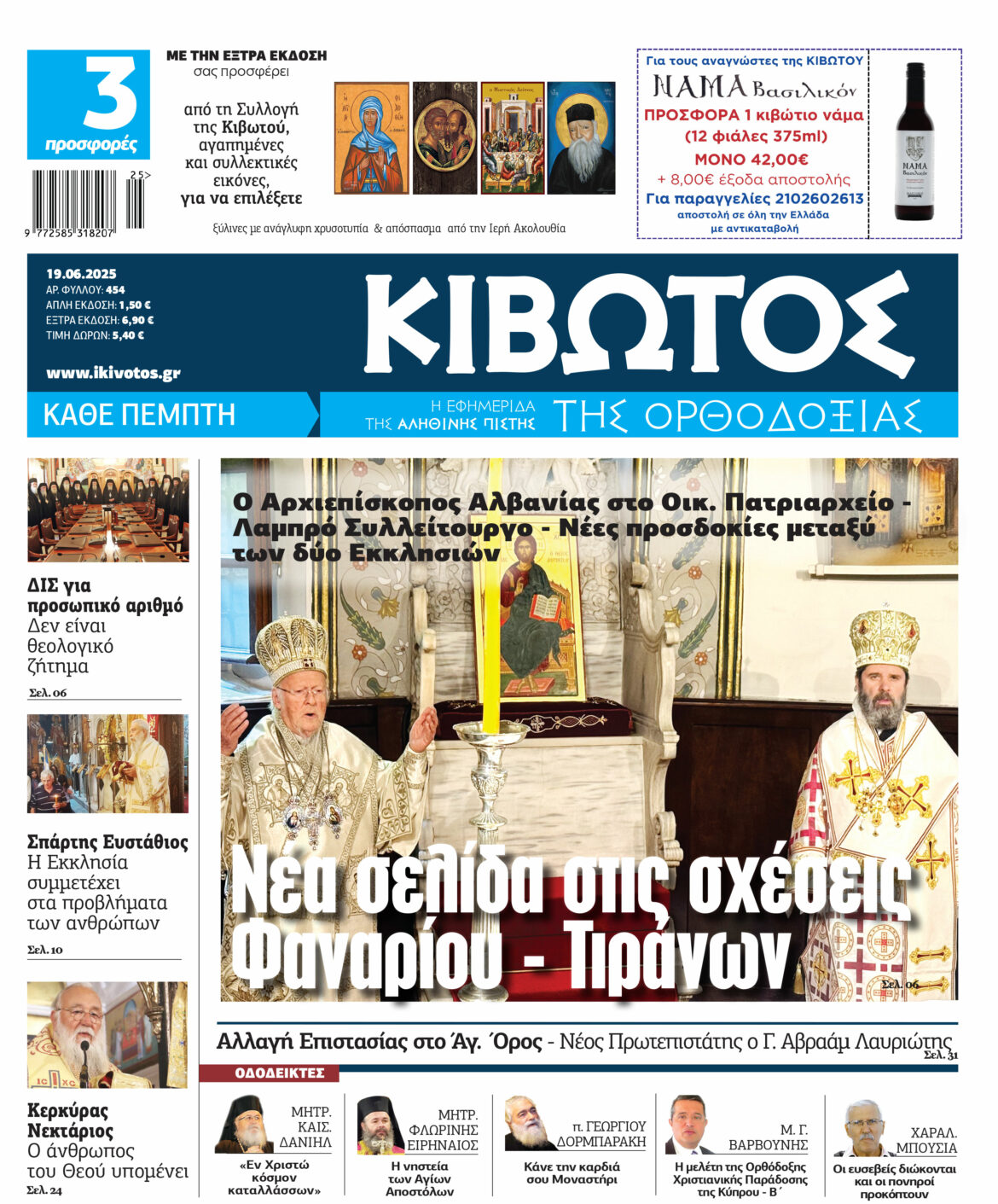 Με την “Κιβωτό της Ορθοδοξίας”, αύριο, Πέμπτη, 19 Ιουνίου 2025, σε όλα τα περίπτερα πανελλαδικά.