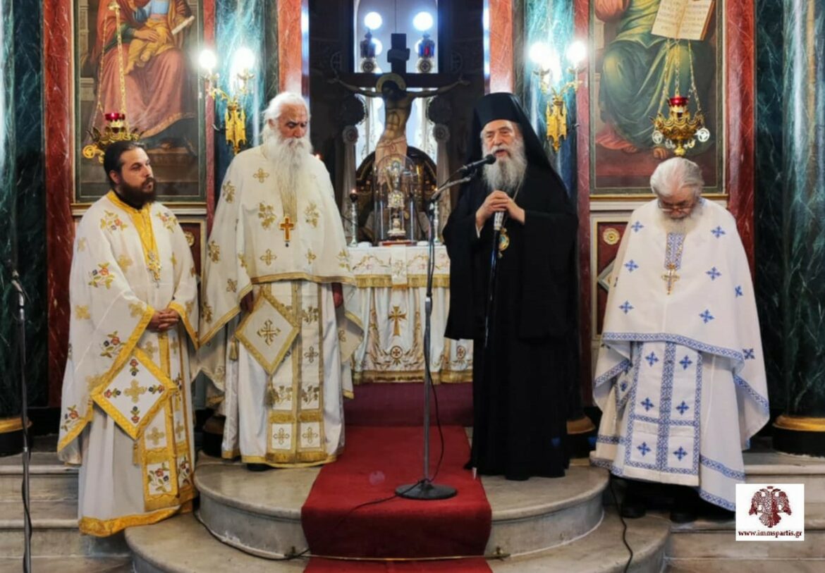 Από την πλευρά του, ο Σεβασμιώτατος Μητροπολίτης μας μίλησε με θερμά λόγια για την βαθιά πίστη του πατρός Γεωργίου, την πολύτιμη προσφορά του στον Μητροπολιτικό ναό και στην Ιερά Μητρόπολή μας γενικότερα, αλλά και τις αστείρευτες γνώσεις του για την τοπική ιστορία, που αποτελούν παρακαταθήκη για τις επόμενες γενιές. Ολοκληρώνοντας, τού πρόσφερε συμβολικά ένα επιγονάτιο, το οποίο φέρει την μορφή του Αγίου Γεωργίου.