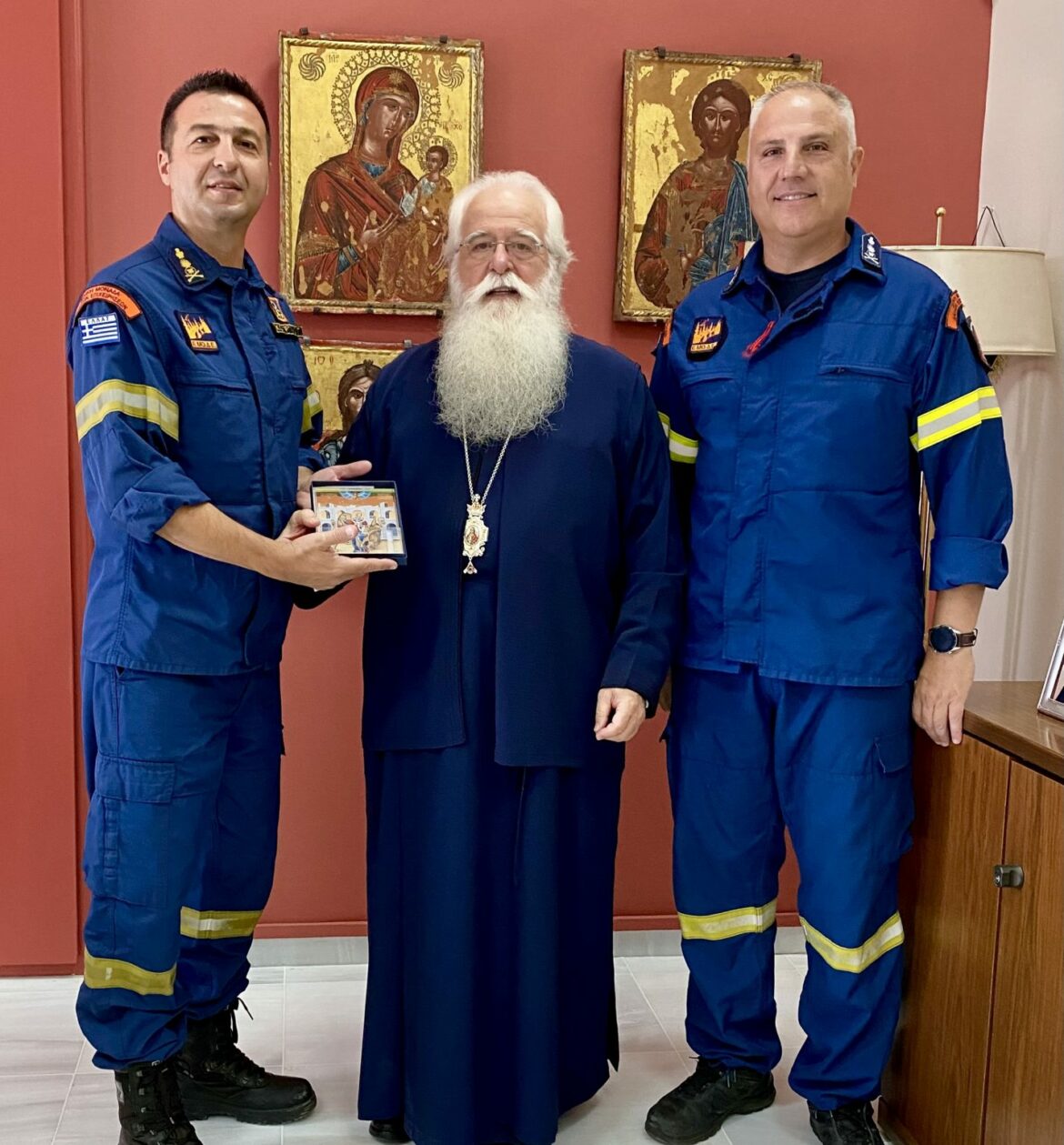 Τον Σεβ. Μητροπολίτη Δημητριάδος κ. Ιγνάτιο επισκέφθηκε σήμερα, 7/7, στο γραφείο του στο Συνεδριακό Κέντρο Θεσσαλίας, ο Διοικητής της Ειδικής Μονάδας Δασικών Επιχειρήσεων (ΕΜΟΔΕ), Αντιπύραρχος κ. Γεώργιος Κούργιας, συνοδευόμενος από τον Υποπυραγό κ. Νικόλαο Φιλιππαίο.