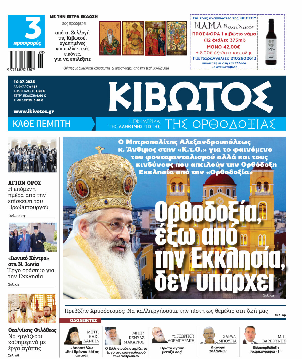 η εφημερίδα Κιβωτός της Ορθοδοξίας