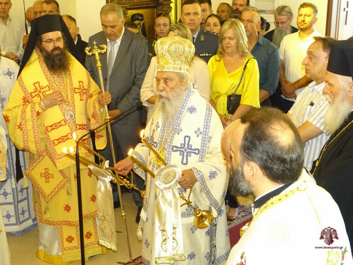 Πριν την Απόλυση, ο Σεβ. Ποιμενάρχης μας απεύθυνε τον πατρικό του λόγο προς τους επίσημους προσκεκλημένους και τους πιστούς, που είχαν κατακλύσει τον Ναό και τον περιβάλλοντα χώρο. Αρχικά, εξέφρασε την ανείπωτη χαρά και την μεγάλη συγκίνησή του για τα εγκαίνια του Ναού, που αποτελούσαν, τόσο για τον ίδιο όσο και για το χριστεπώνυμο πλήρωμα της τοπικής Εκκλησίας, ένα ανεξόφλητο πνευματικό χρέος ετών προς τον εθνοϊερομάρτυρα Ανανία Λαμπάρδη, ο οποίος χαρακτηριζόταν από την ακλόνητη πίστη, την πνευματικότητα, τον ηρωικό πατριωτισμό και το πλούσιο φιλανθρωπικό του έργο. Ακολούθως, ευχαρίστησε θερμά όλους όσοι συνέβαλαν, με οποιοδήποτε τρόπο, στην ταχύτατη ανέγερση του Ιερού Ναού, γεγονός που φανερώνει την πίστη του λαού στον ευλογημένο τόπο μας.