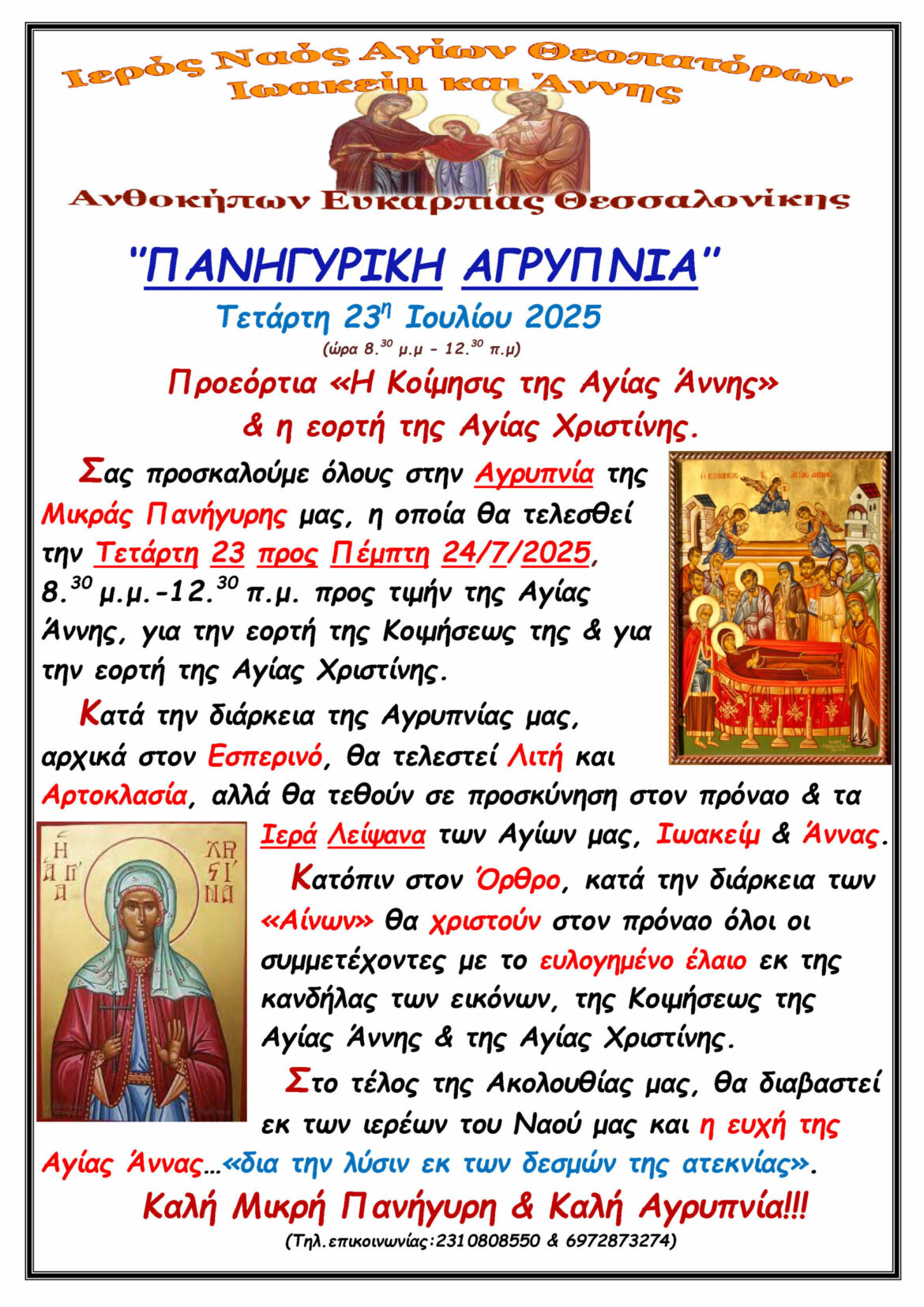ΕπικαιρότηταΜητροπόλεις Αγρυπνία Ι.Ν.Αγίων Θεοπατόρων Ιωακείμ και Άννης στη Δυτική Θεσσαλονίκη από ikivotos 22 Ιουλίου 2025 Συντάκτης ikivotos 22 Ιουλίου 2025 203 ΑγρύπνιαΜητρόπολη Νεαπόλεως Μοιρασου 0 FacebookTwitterPinterestEmail Προηγούμενο άρθρο Ο εορτασμός του Προφήτη Ηλία στη Σπάρτη Επόμενο άρθρο Της Επικαιρότητος, Τρίτη 22 Ιουλίου (2025) ΔΕΙΤΕ ΕΠΙΣΗΣ Πρωτοπρεσβύτερος π. Σπυρίδων Βασιλάκος: «Κάθε μέρα Χριστούγεννα» Η εορτή του Αγίου Ελευθερίου στο Σαγκρί Νάξου Χριστουγεννιάτικη εορτή Φοιτητών, εργαζομένων νέων και νέων ζευγαριών... Ο Παροναξίας Καλλίνικος στον Δαμαριώνα και στον Καλόξυλο... Ιερό Ευχέλαιο στον Ι.Μ. Ναό Αγίων Κωνσταντίνου και... Ιερά Αγρυπνία την Προπαραμονή των Χριστουγέννων στον Ιερό...