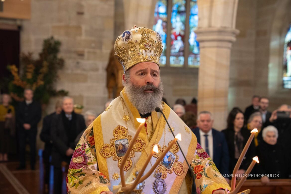 Ο Σεβασμιώτατος Αρχιεπίσκοπος κ.κ. Μακάριος, κατά τη σύντομη προσλαλιά του στο τέλος της Θείας Λειτουργίας, απευθύνθηκε με θερμούς, εγκωμιαστικούς λόγους προς τον π. John Behr και τον ευχαρίστησε για την επίσκεψη του στο Σύδνεϋ και τη συμμετοχή του στο Διεθνές Επιστημονικό Συνέδριο για την Α’ Οικουμενική Σύνοδο, το οποίο διοργάνωσε η Θεολογική Σχολή του Αποστόλου Ανδρέου κατά το διήμερο 22 και 23 Αυγούστου. «Είναι μεγάλη τιμή για εμάς, που σας έχουμε μαζί μας», ανέφερε εμφατικά ο Σεβασμιώτατος, απευθυνόμενος στον διακεκριμένο Θεολόγο, ενώ του προσέφερε έναν επιστήθιο σταυρό, σε ένδειξη ευγνωμοσύνης για τη σταθερή υποστήριξή του προς τη Θεολογική Σχολή της Ιεράς Αρχιεπισκοπής Αυστραλίας.