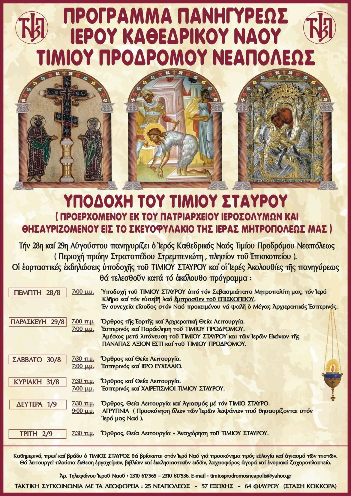 ΕπικαιρότηταΜητροπόλεις Πρόγραμμα Πανηγύρεως Καθεδρικού Ναού Τιμίου Προδρόμου Νεαπόλεως από ikivotos 29 Αυγούστου 2025 Συντάκτης ikivotos 29 Αυγούστου 2025 151 Μητρόπολη Νεαπόλεως Μοιρασου 0 FacebookTwitterPinterestEmail Προηγούμενο άρθρο Η Εορτή του Αγίου Κοσμά στην Καρδίτσα Επόμενο άρθρο Θεσσαλιώτιδος Τιμόθεος: Ο Άγιος να ενεργοποιεί μέσα μας την πίστη στον Χριστό ΔΕΙΤΕ ΕΠΙΣΗΣ Η εορτή του Αγίου Ανδρέου του Πρωτοκλήτου στη... Η Εορτή του Οσίου Στυλιανού στη Ρόδο Με λαμπρότητα η Ρόδος τίμησε την Αγία Αικατερίνη “Όλοι μια αγκαλιά, χτίζουμε μια κοινωνία ίσων ευκαιριών” Ευκαιρίες Σταδιοδρομίας – Γέφυρες σε νέους στη Μητρόπολη... Αγρυπνία στα Γιαννιτσά για τον Όσιο Πορφύριο