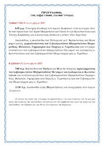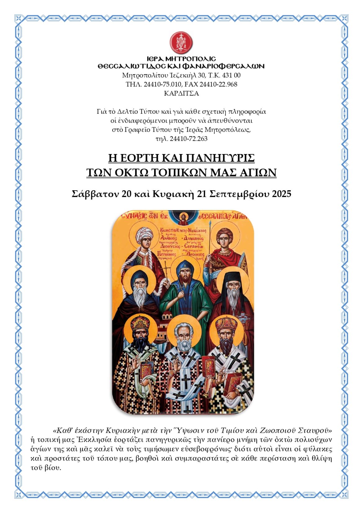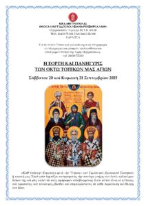 ΕπικαιρότηταΜητροπόλεις Πρόγραμμα εορτής και πανηγύρεως των οκτώ τοπικών Αγίων στη Μητρόπολη Θεσσαλιώτιδος από ikivotos 16 Σεπτεμβρίου 2025 Συντάκτης ikivotos 16 Σεπτεμβρίου 2025 97 ΥΠΕΡ Μητρόπολη Θεσσαλιώτιδος Μοιρασου 0 FacebookTwitterPinterestEmail Προηγούμενο άρθρο Η Σύναξις των Αγίων Θεοπατόρων στη Δυτική Θεσσαλονίκη Επόμενο άρθρο Γεροντικό: Ο θνητός άνθρωπος ΔΕΙΤΕ ΕΠΙΣΗΣ Δημητριάδος Ιγνάτιος: «Η ψυχή που αγαπά και προσφέρεται... Αρχιμ. π. Καλλίνικος Γεωργακόπουλος: Δεν μας ξεχνάει ο... Παρουσίαση του Ωδείου της Ιεράς Μητροπόλεως Πειραιώς σε... Χειροτονία Διακόνου στο Ρέθυμνο Γόρτυνος Νικηφόρος: Να διατηρήσουμε ζωντανή την Ενορία –... Με λαμπρότητα η Εορτή του Μητροπολιτικού Ναού Αγίων...
