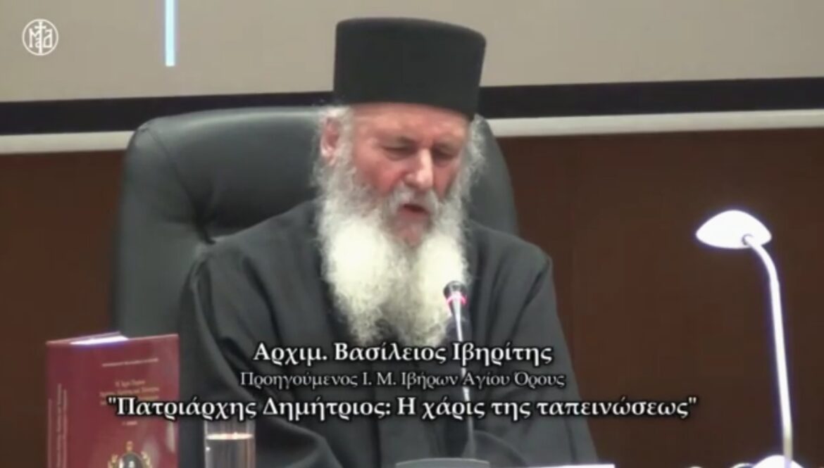 Στο άκουσμα της εκδημίας του Αρχιμ. Βασιλείου Γοντικάκη, Προηγουμένου της Ιεράς Μονής Ιβήρων Αγίου Όρους, ενθυμούμαστε και κοινοποιούμε την ομιλία του, η οποία πραγματοποιήθηκε στις 7/12/2013, στην κεντρική αίθουσα του Συνεδριακού Κέντρου Θεσσαλίας της Ιεράς Μητροπόλεως Δημητριάδος, με αφορμή την εκδήλωση για τη συμπλήρωση 23 ετών από την ευλογητή έλευση του αειμνήστου Πατριάρχου Δημητρίου στο Βόλο (1990) και την έκδοση του τρίτομου, περισπούδαστου έργου του Σεβ. Μητροπολίτου Φιλαδελφείας κ. Μελίτωνος με τίτλο: «Η ιερά πορεία Αγάπης, Ειρήνης και Ενότητος του Οικουμενικού Πατριάρχου Δημητρίου».