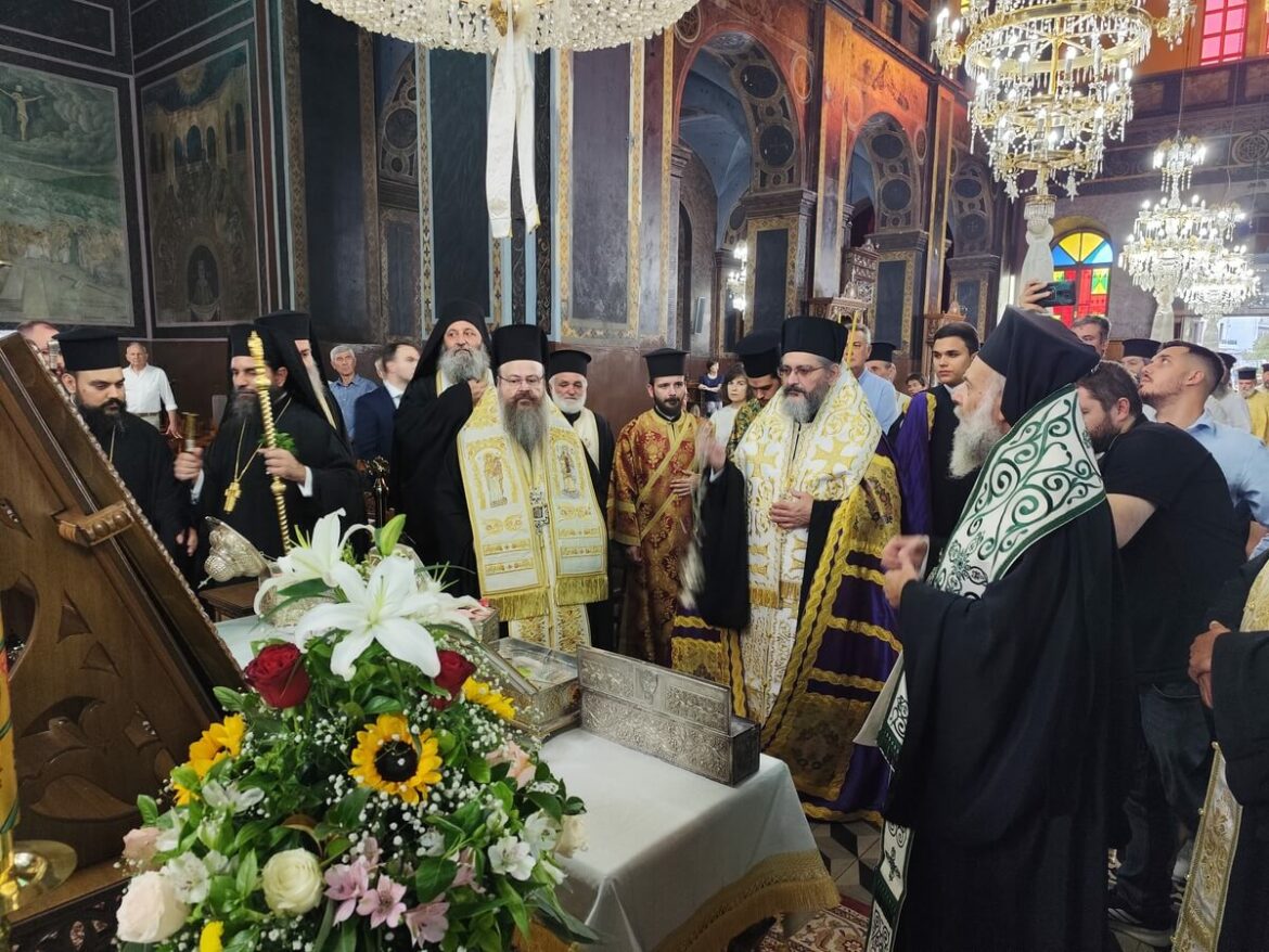 Πράγματι, με χαρά και πνευματική αγαλλίαση ευρισκόμεθα οι δύο Αρχιερείς σήμερα ανάμεσά σας, ανταποκρινόμενοι στην πρόσκληση του Σεπτού Ποιμενάρχου σας, τον οποίο ευχαριστούμε εγκαρδίως για τη φιλάνθρωπη αγάπη και τη δυνατότητα που μας προσέφερε, ώστε να μπορέσουμε και εμείς να συμμετάσχουμε σε αυτήν την Πανηγυρική Ιερά Σύναξη, προς τιμήν των Αγίων της Θεσσαλιώτιδος και όλης της ευρύτερης περιοχής.