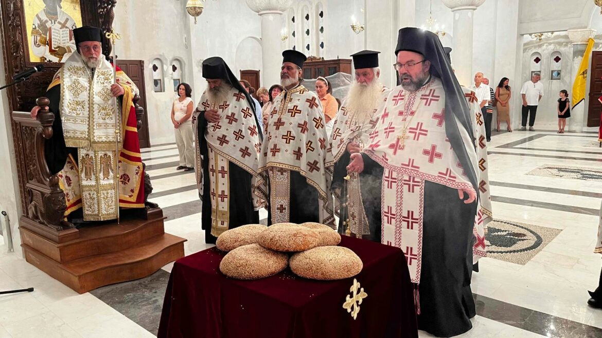 Του πανηγυρικού Εσπερινού το εσπέρας του Σαββάτου 28 Σεπτεμβρίου, ο οποίος έλαβε χώρα στον υπό αποπεράτωση ιερό Ναό του Αγίου, χοροστάτησε ο Σεβασμιώτατος Μητροπολίτης μας.