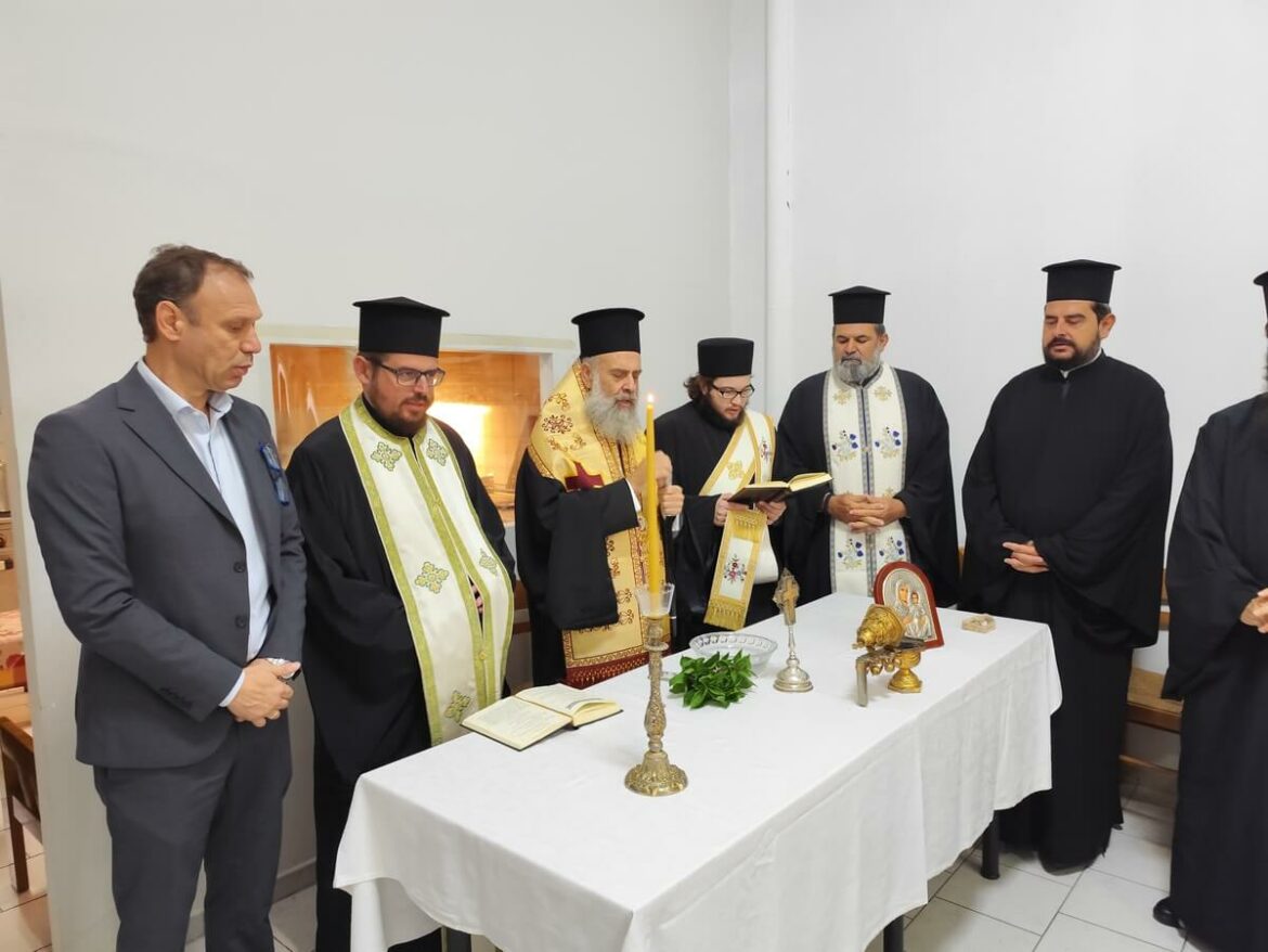 Κατά τον χαιρετισμό του, ο Σεβασμιώτατος εξέφρασε τη χαρά του που βρέθηκε για ακόμη μία φορά στον χώρο αυτό, ο οποίος αποτελεί σημείο αγάπης και διακονίας προς τον συνάνθρωπο. Όπως είπε: «Χαιρόμαστε όπου είμαστε σήμερα εδώ μαζί και τελέσαμε την ακολουθία του Αγιασμού σε αυτόν τον ευλογημένο τόπο, σε αυτόν τον χώρο όπου τόσα χρόνια με τις προσπάθειες όλων σας και του πατρός Στεφάνου και του πατρός Θεοκλήτου δημιουργείται η προϋπόθεσης να δείχνουμε την αγάπη μας και τη σκέψη μας στους άλλους ανθρώπους».