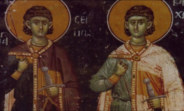 Οι Άγιοι Σέργιος και Βάκχος υπηρετούσαν στις στρατιωτικές τάξεις του αυτοκράτορα Μαξιμιανού. Τους διέκρινε μεγάλη ανδρεία στα πεδία των μαχών, αλλά και σωφροσύνη στην καθημερινή τους ζωή. Γι’ αυτό και ο αυτοκράτορας τους απένειμε τα αξιώματα του πριμικηρίου της σχολής των Kεντηλίων και του σεκουνδουκηρίου, αντίστοιχα