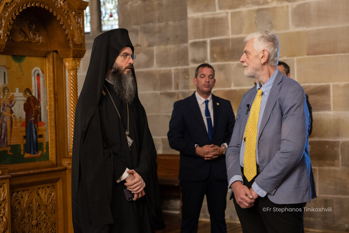Τον Υφυπουργό υποδέχθηκαν και ξενάγησαν στον Ιερό Καθεδρικό Ναό του Ευαγγελισμού της Θεοτόκου οι Θεοφιλέστατοι Επίσκοποι Καμπέρας κ. Αθηναγόρας, Μιλητουπόλεως κ. Ιάκωβος, Μαγνησίας κ. Χριστόδουλος και Κερασούντος κ. Χριστοφόρος, Πρωτοσύγκελλος της Ιεράς Αρχιεπισκοπής.