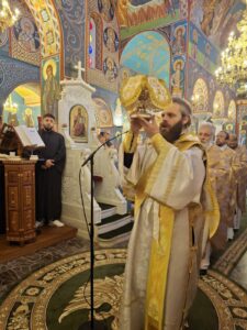 Στον Όρθρο και στη Θεία Λειτουργία, μετά από άδεια του Μητροπολίτη Νέας Ιωνίας κ. Γαβριήλ, χοροστάτησε και ιερούργησε ο Μητροπολίτης Φλωρίνης κ. Ειρηναίος, ο οποίος βρίσκεται στην Αθήνα για τη Σύγκληση της Ιεραρχίας των προηγούμενων ημερών.