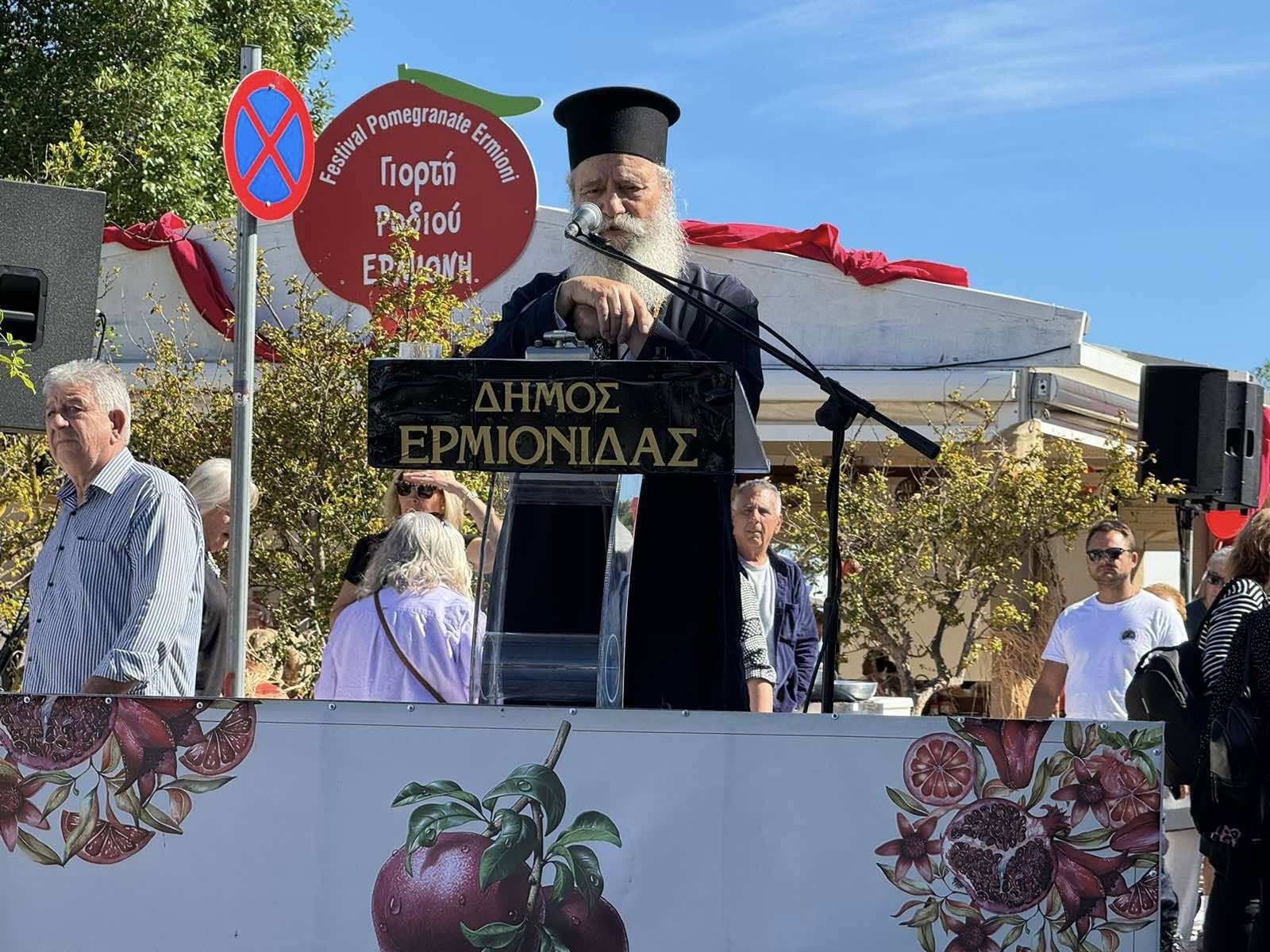Την Κυριακή 26.10.2025 μετά το πέρας των Θυρανοιξίων του Ιερού Παρεκκλησίου του Αγίου Δημητρίου του Μυροβλύτου στην Ερμιόνη, ο Σεβ. Μητροπολίτης μας κ. ΕΦΡΑΙΜ παρέστη στην έναρξη της εορτής Ροδιού Ερμιόνης και απηύθυνε σχετικό χαιρετισμό, συνοδευόμενος υπό του Πασιολ. Πρωτοσυγκέλλου Αρχιμ. Νεκταρίου Δαρδανού, των ιερέων της πόλεως Ερμιόνης και του Διακόνου.
