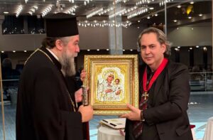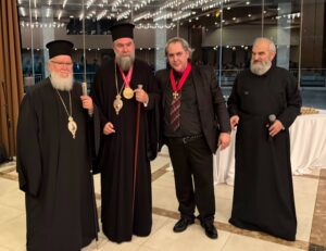 Ξεχωριστή στιγμή αποτέλεσε η Τιμητική Διάκριση του Γενικού Διευθυντού του Ωδείου της Ιεράς Μητροπόλεως Πειραιώς κου Νικολάου Αμοργιανού από τον Μητροπολίτη Σερρών και Νιγρίτης κ.Θεολόγο, για την πολυετή προσφορά του στην Εκκλησιαστική Μουσική και τον Πολιτισμό της Πατρίδος μας, επιδίδοντάς του Τιμητική Πλακέτα και τον Σταυρό του Αγίου Σπυρίδωνος.
