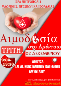 ΕπικαιρότηταΜητροπόλεις Εθελοντική Αιμοδοσία στη Φλώρινα από ikivotos 27 Νοεμβρίου 2025 Συντάκτης ikivotos 27 Νοεμβρίου 2025 16 Μοιρασου 0 FacebookTwitterPinterestEmail Προηγούμενο άρθρο Μη χάσετε σήμερα, Πέμπτη 27 Νοεμβρίου, την Κιβωτό της Ορθοδοξίας, με Νέα τιμή Επόμενο άρθρο Σεμινάριο Ορθόδοξης διδαχής και Κατήχησης στη Μητρόπολη Θεσσαλονίκης ΔΕΙΤΕ ΕΠΙΣΗΣ Ημέρα πίστης και γνώσης με τους μαθητές του... Η Εορτή του Αγίου Στυλιανού στη Μητρόπολη Θεσσαλονίκης Σεμινάριο Ορθόδοξης διδαχής και Κατήχησης στη Μητρόπολη Θεσσαλονίκης Μη χάσετε σήμερα, Πέμπτη 27 Νοεμβρίου, την Κιβωτό... Τιμώντας τον όσιο Στυλιανό: Θεία Λειτουργία στην Ι.Μ.... Τρισάγιο και απόδοση τιμών στο μνημείο των εκτελεσθέντων...