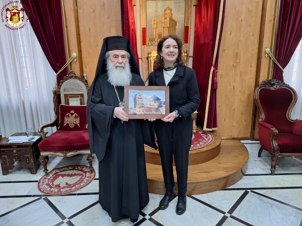 Ὡσαύτως ἐδέχθη τήν κ. Sieglinde Weinbrenner, ἀντιπρόσωπον τοῦ Lutheran World Federation καί ἐπῄνεσεν αὐτήν διά τό φιλανθρωπικόν καί ἀνθρωπιστικόν ἔργον, τό ὁποῖον ἐπιτελεῖ ἐν συνεργασίᾳ μετά τοῦ Νοσοκομείου Augusta Victoria ἐπί τοῦ Ὄρους τῶν Ἐλαιῶν.