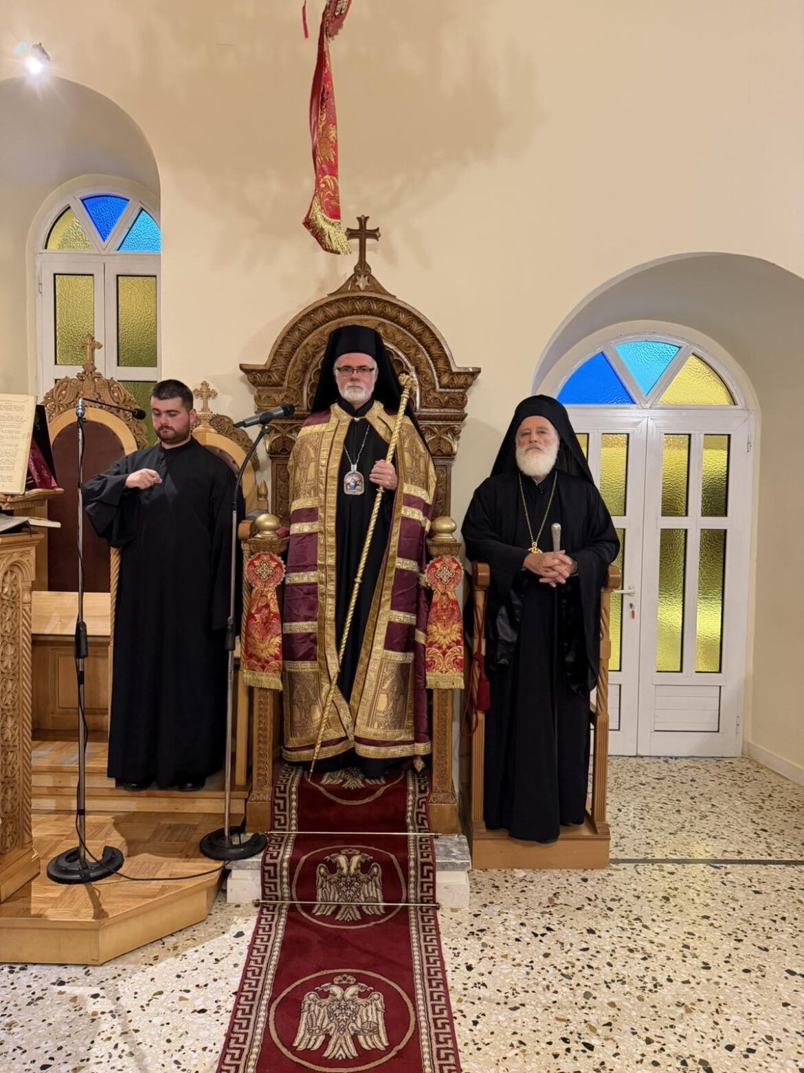 Το Σάββατο 13 Δεκεμβρίου εσπέρας, στον Ιερό Ναό Αγίου Νεκταριού στο Αρκαλοχώρι, χοροστάτησε του Εσπερινού ο Θεοφιλέστατος Επίσκοπος Ελευσίνος κ. Τιμόθεος, εκ του Πατριαρχείου Αλεξανδρείας, συγχοροστατούντος του Σεβ. Μητροπολίτου μας κ. Ανδρέου. Ο Θεοφιλέστατος ομίλησε στο εκκλησίασμα, αναφέρθηκε στην πορεία της διακονίας του στην Αφρική, ενώ ευχαρίστησε εγκάρδια τον Σεβ. Μητροπολίτης μας. Ο σεπτός Ποιμενάρχης μας, στην προσλαλιά του, εξέφρασε τη χαρά του για το γεγονός ότι ο Θεοφιλέστατος τέλεσε τον πρώτο του Εσπερινό ως Επίσκοπος στον Ιερό Ναό Αγίου Νεκταρίου και του ευχήθηκε καλή δύναμη στα νέα του αρχιερατικά καθήκοντα. Τέλος, η Ενορία του Καθεδρικού Ναού προσέφερε στον Θεοφιλέστατο ένα Αρχιερατικό βιβλίο ως ενθύμιο της επισκέψεώς του.
