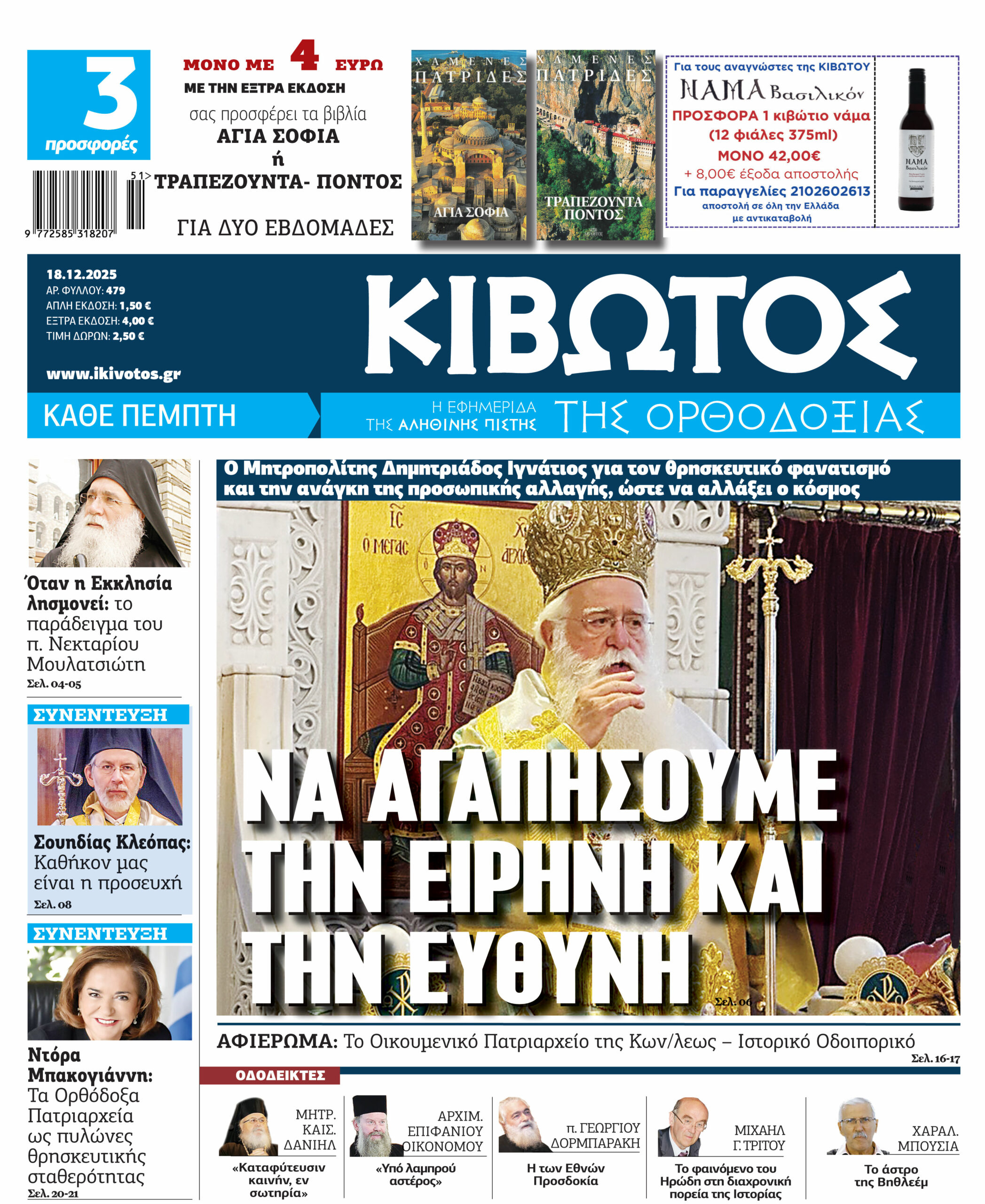 Η εφημερίδα ΚΙΒΩΤΟΣ ΤΗΣ ΟΡΘΟΔΟΞΙΑΣ