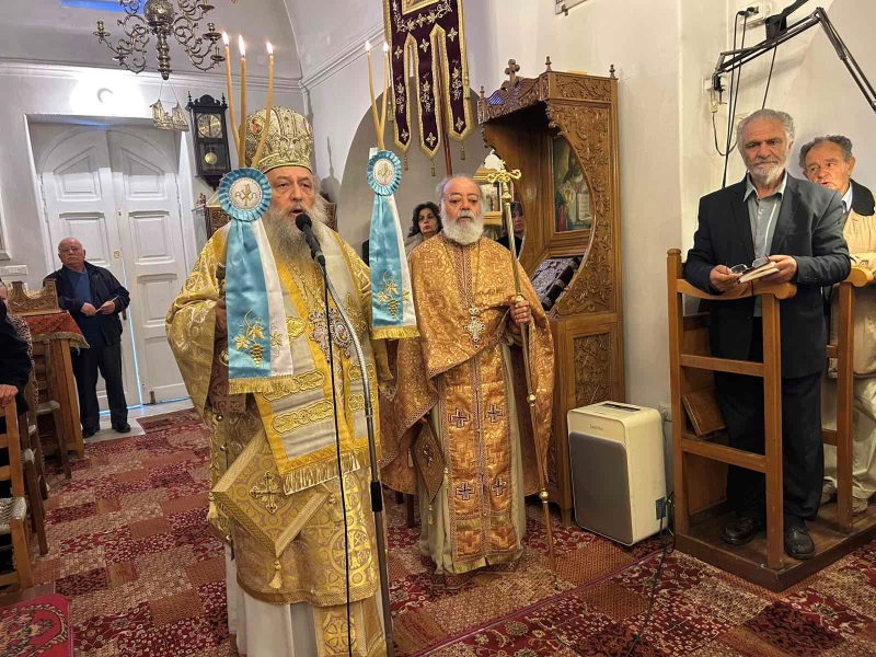 Κατά τη διάρκεια του Κοινωνικού, ο Σεβασμιώτατος κήρυξε τον θείο λόγο, ενώ προ της Απολύσεως προέστη του Ιερού Μνημοσύνου της αειμνήστου Ειρήνης Σωπαρίπα.