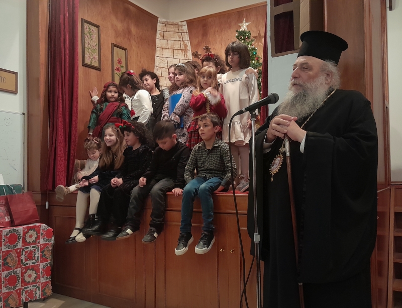 Μετά το πέρας της εκδήλωσης, ο Σεβασμιώτατος Μητροπολίτης μας, απηύθυνε χαιρετισμό, συνεχάρη τα παιδιά για τη συμμετοχή τους και διένειμε δώρα, εν όψει των επικείμενων εορτών της Εκκλησίας μας. Ακολούθησε κέρασμα για όλους τους παρευρισκομένους.