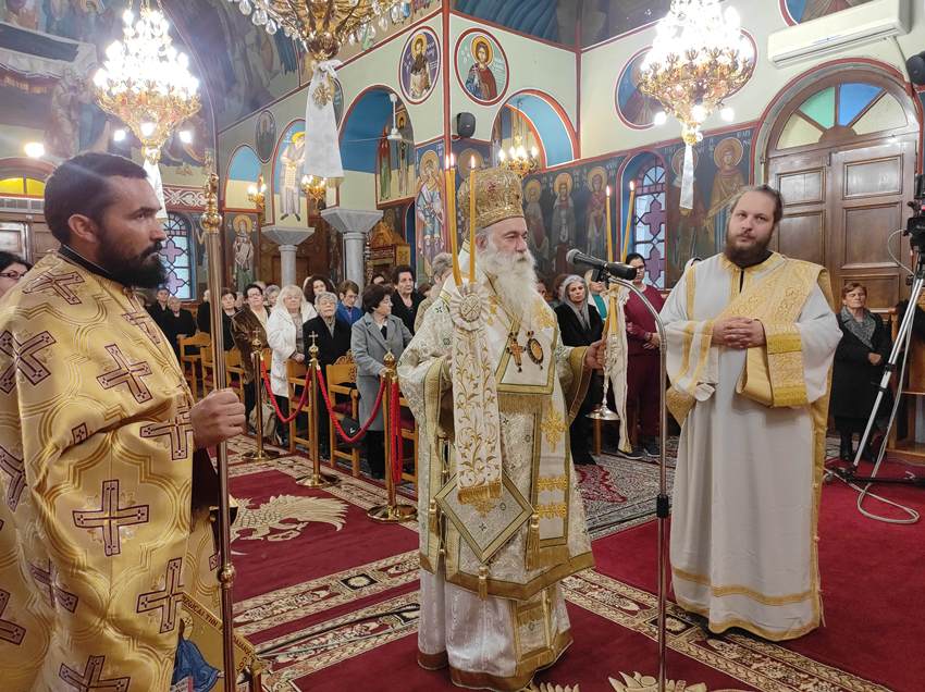 Προ της απολύσεως ο Εφημέριος του Ι. Ναού, εκφράζοντας τα αισθήματα όλων των ενοριτών και του Εκκλησιαστικού Συμβουλίου καλωσόρισε τον Σεβ. Μητροπολίτη μας ευχόμενος καλή Ποιμαντορία. Στην αντιφώνησή Του ο Σεβασμιώτατος ευχαρίστησε τον Εφημέριο π. Νικόλαο και τους πιστούς και με αφορμή την Ευαγγελική περικοπή, επεσήμανε ότι η Εκκλησία μας καλεί να εορτάσουμε θεοπρεπώς τα Χριστούγεννα, με την προσδοκία ο Χριστός να γεννηθεί μέσα στην καρδιά μας.