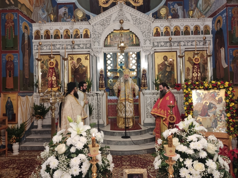 Τον Σεβασμιώτατο Ποιμενάρχη μας πλαισίωσαν ο Ιεροκήρυκας της Ιεράς Μητροπόλεως Αρχιμ. Αρσένιος Μελισσιανός (ο οποίος και κήρυξε τον θείο λόγο), ο Πρωτοπρ. π. Εμμανουήλ Τζιώτης (οικείος εφημέριος) και ο Διάκ. π. Δαυίδ Καρυτινός.