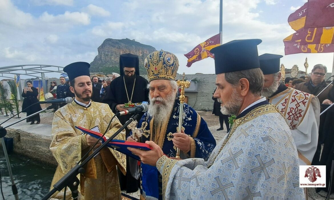 Μετά την Απόλυση, προπορευόμενης της Φιλαρμονικής και των ιερών λαβάρων, σχηματίσθηκε λιτανευτική πομπή έως το λιμάνι της κωμόπολης, όπου τελέσθηκε ο Αγιασμός των Υδάτων και η κατάδυση του Τιμίου Σταυρού από τον Σεβασμιώτατο. Πολλοί ήταν οι νέοι που βούτηξαν στα νερά, για να πιάσουν τον Σταυρό και να λάβουν την ευλογία Του.