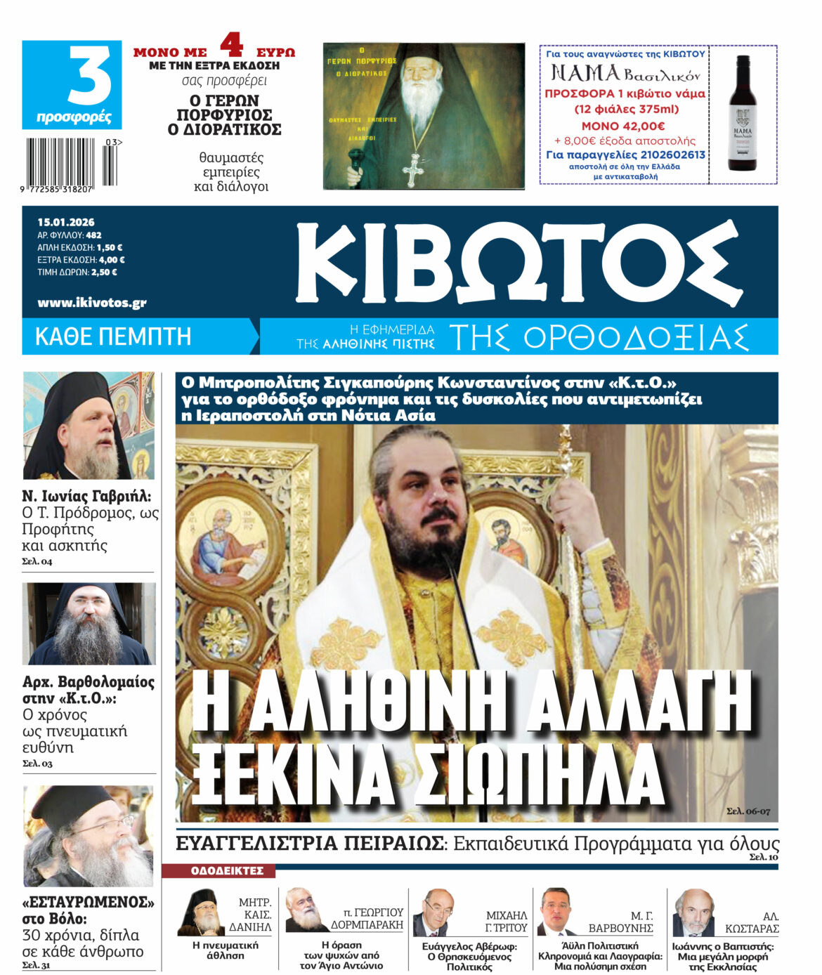 - Ο Μητροπολίτης Σιγκαπούρης Κωνσταντίνος στην «Κ.τ.Ο.» για το ορθόδοξο φρόνημα και τις δυσκολίες που αντιμετωπίζει η Ιεραποστολή στη Νότια Ασία – Η αληθινή αλλαγή ξεκινά σιωπηλά