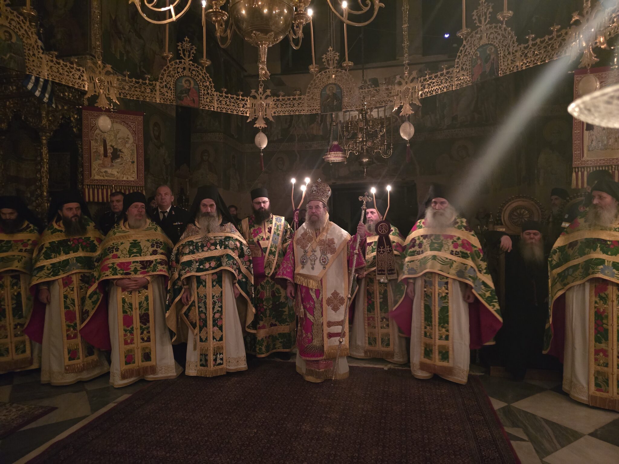 Με πρόσκληση της Ιεράς Κοινότητος Αγίου Όρους Άθω και κατόπιν αδείας της Α.Θ.Π. του Οικουμενικού μας Πατριάρχου κ.κ. ΒΑΡΘΟΛΟΜΑΙΟΥ, ο Σεβασμιώτατος Μητροπολίτης Ιερισσού, Αγίου Όρους και Αρδαμερίου κ. ΘΕΟΚΛΗΤΟΣ προσήλθε προσκυνητής στο Άγιον Όρος και προέστη της λαμπράς Παννυχίδος των Χριστουγέννων, με το Πατρώο Ημερολόγιο, στον Πάνσεπτο Ιερό Ναό του Πρωτάτου των Καρυών, συνοδευόμενος από τον Πρωτοσύγκελλό του Παν. Αρχιμ. π. Παν. Αρχιμ. π. Δωρόθεο Ζέρβα και τον Παν. Αρχιμ. π. Παΐσιο Σουλτανικά, Προϊστάμενο του Ι.Μ.Ν. Αγίου Στεφάνου Αρναίας.