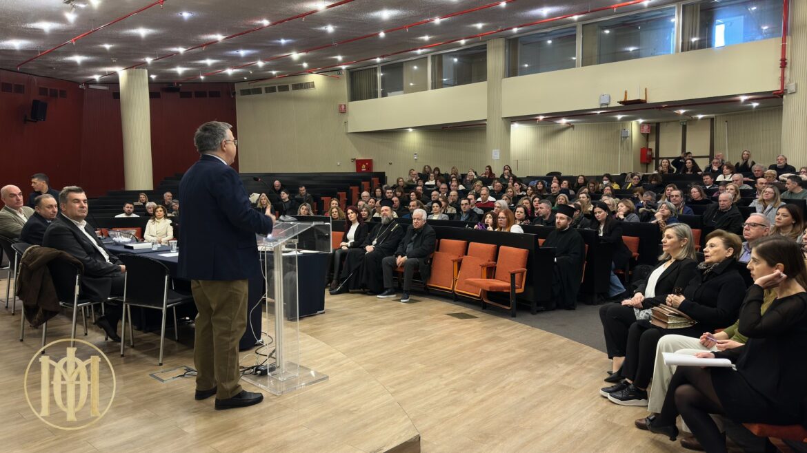 Τον Ποιμενάρχη μας καλωσόρισε και ευχαρίστησε, εκ μέρους των διευθυντών και των λοιπών εργαζομένων, για την αποδοχή της πρόσκλησης ο Γραμματέας της Αποκεντρωμένης Διοίκησης, Δρ. κ. Δημήτριος Γαλαμάτης.