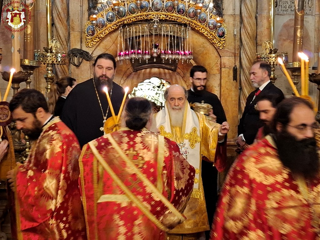 Τῆς θείας Λειτουργίας καί τῆς ὅλης ἑορτῆς καί πανηγύρεως προεξῆρξεν ὁ Μακαριώτατος Πατήρ ἡμῶν καί Πατριάρχης Ἱεροσολύμων κ.κ. Θεόφιλος, συλλειτουργούντων Αὐτῷ τοῦ Σεβασμιωτάτου Ἀρχιεπισκόπου Γεράσων κ. Θεοφάνους, τοῦ Γέροντος Ἀρχιγραμματέως Σεβασμιωτάτου Ἀρχιεπισκόπου Κωνσταντίνης κ. Ἀριστάρχου καί τοῦ ἐν Κωνσταντινουπόλει Ἐξάρχου Σεβασμιωτάτου Ἀρχιεπισκόπου Ἀνθηδῶνος κ. Νεκταρίου, Ἁγιοταφιτῶν Ἱερομονάχων, ὧν πρῶτος ὁ Γέρων Καμαράσης Ἀρχιμανδρίτης π. Νεκτάριος, ὁ Γέρων Δραγουμᾶνος καί Τελετάρχης Ἀρχιμανδρίτης π. Ματθαῖος, ὁ Ἔξαρχος ἐν Ἀθήναις Ἀρχιμανδρίτης π. Ἱερώνυμος, ὁ Γραμματεύς τῆς Ἁγίας καί Ἱερᾶς Συνόδου Ἀρχιμανδρίτης π. Χριστόδουλος, οἱ Ἀρχιμανδρῖται π. Κλαύδιος, π. Ἀμφιλόχιος, π. Διονύσιος, π. Ραφαήλ, π. Κάλλιστος, Ἱερεῖς τοῦ Ναοῦ, ὁ Προϊστάμενος τῆς Ρωσικῆς Πνευματικῆς Ἀποστολῆς εἰς Ἱεροσόλυμα (MISSIA) Ἀρχιμανδρίτης π. Βασιανός, ὁ ἐκπρόσωπος τοῦ Πατριαρχείου τῆς Ρουμανίας Ἀρχιμανδρίτης π. Ἰωάννης, ὁ Ἀρχιδιάκονος π. Μᾶρκος καί ἄλλοι Ἱεροδιάκονοι, τῇ τιμητικῇ παρουσίᾳ τοῦ Γενικοῦ Προξένου τῆς Ἑλλάδος εἰς τά Ἱεροσόλυμα κ. Δημητρίου Ἀγγελοσοπούλου καί τῆς κ. Ἄννης Μάντικα καί ἄλλων διπλωματικῶν ἐκπροσώπων, τῇ προσευχητικῇ συμμετοχῇ πολλῶν πιστῶν.