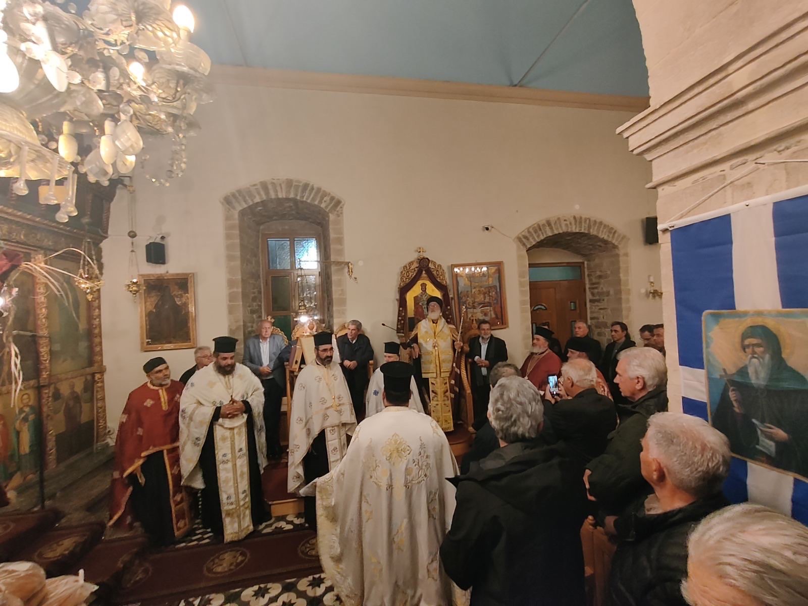 Την Παρασκευή 16 Ιανουαρίου, παραμονή του Αγίου Αντωνίου, ο Σεβ. Ποιμενάρχης μας κ. Ανδρέας μετέβη στον Σκινιά Μονοφατσίου, όπου χοροστάτησε του Εσπερινού στον ομώνυμο πανηγυρίζοντα Ιερό Ναό. Ο Σεβασμιώτατος, αφού ομίλησε εκτενώς για το πρόσωπο και το ασκητικό φρόνημα του τιμώμενου Αγίου, ευλόγησε τους προσφερόμενους άρτους και ευχήθηκε έτη πολλά και ευλογημένα. Μεταξύ άλλων παρέστη ο Δήμαρχος Μινώα Πεδιάδος κ. Βασίλης Κεγκέρογλου.