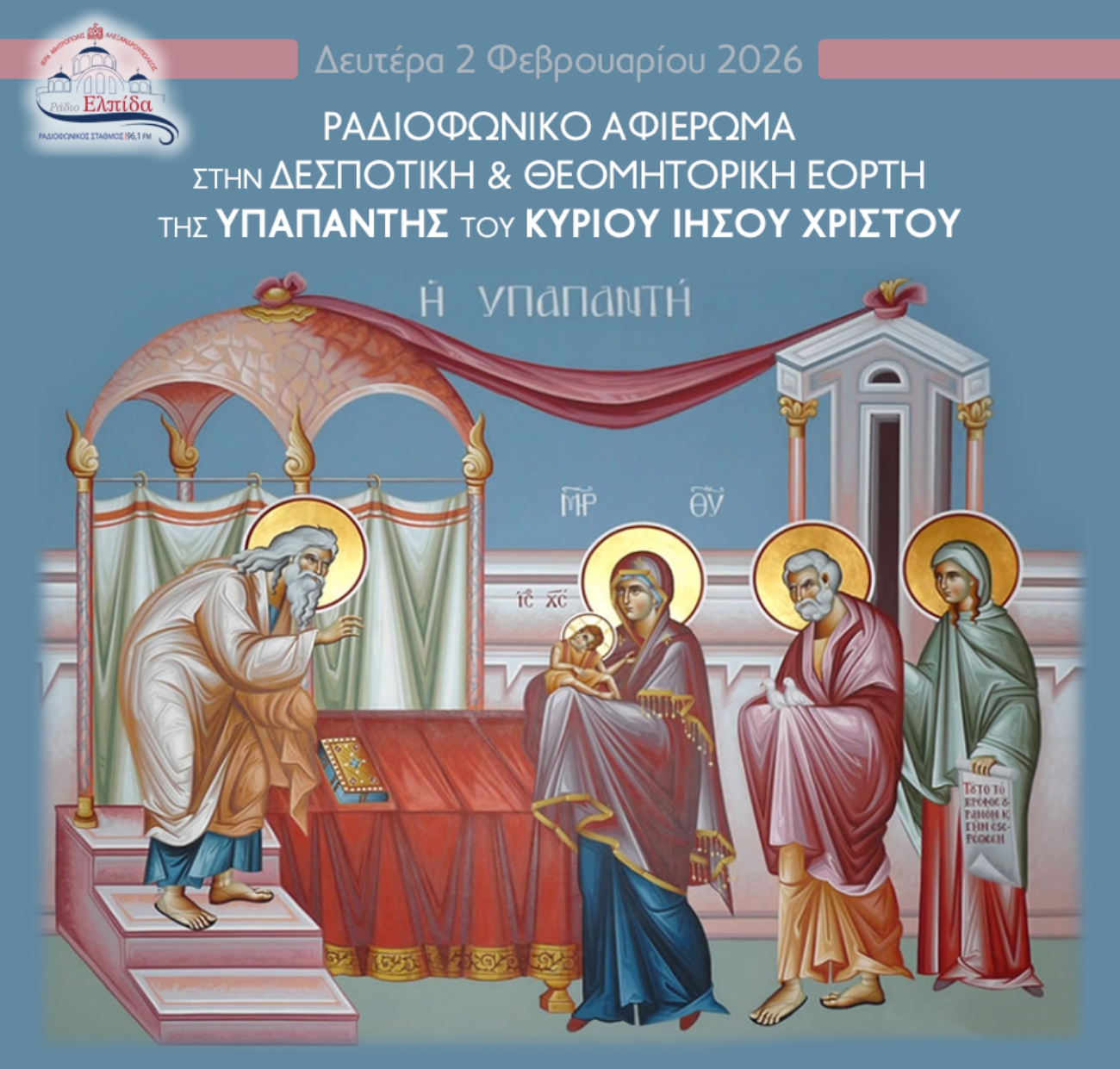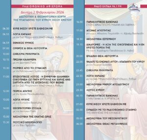 ΕπικαιρότηταΜητροπόλεις Αφιέρωμα στην Υπαπαντή του Κυρίου στο Ρ/Σ ΕΛΠΙΔΑ της Αλεξανδρουπόλεως από ikivotos 30 Ιανουαρίου 2026 Συντάκτης ikivotos 30 Ιανουαρίου 2026 16 Μητρόπολη Αλεξανδρουπόλεως Μοιρασου 0 FacebookTwitterPinterestEmail Προηγούμενο άρθρο Ομιλία του Οικ. Πατριάρχου κατά την Παρουσίασιν Ακαδημαικής Έδρας της Θεολογικής Σχολής ΑΠΘ, με τίτλο “Μητροπολίτης Δράμας Παύλος” Επόμενο άρθρο Μη λησμονείς το καντήλι κσι την καθημερινή θυμιάτιση στο σπίτι (Βίντεο) ΔΕΙΤΕ ΕΠΙΣΗΣ O Πρόεδρος του Ελληνικού Ερυθρού Σταυρού στην εκδήλωση... Ομιλία του Οικ. Πατριάρχου σε Θυρανοίξια Ναού στην... Σπάρτης Ευστάθιος: Είναι ανάγκη να επικεντρώσουμε στις πάντα... Οικ. Πατριάρχης: Οι παιδαγωγικές θέσεις των Τριών Ιεραρχων... Η Καλαμάτα πανηγυρίζει την πολιούχο της «Παναγία Υπαπαντή» Ομιλία του Οικ. Πατριάρχου κατά την Παρουσίασιν Ακαδημαικής...