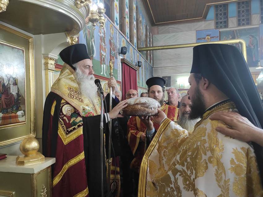 Ανήμερα της εορτής, στο Ι. Ησυχαστήριο Αγίου Χαραλάμπους Καλαμακίου λειτούργησε ο Θεοφιλέστατος Επίσκοπος Κεγχρεών κ. Αγάπιος, Πρωτοσύγκελλος της Ι. Μητροπόλεως Κορίνθου πλαισιούμενος από τους Αιδεσ. Πρωτ/ρους π. Γρηγόριο Θεοδώρου, συνταξιούχο Κληρικό, τον Ιερομ. π. Γεράσιμο Λάμπο, Εφημέριο του Ι. Ναού Αγίων Αναργύρων Καλαμακίου και τον Διάκονο π. Άγγελο Σαλάτα. Στον λόγο του, ο Θεοφιλέστατος μετέφερε τις ευχές και τις ευλογίες του Σεβασμιωτάτου Ποιμενάρχου Κορίνθου κ. Παύλου.