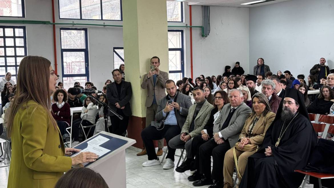 Ἀναφερόμενη στόν ἱστορικό καί πνευματικό χαρακτήρα τοῦ τόπου, τόνισε ὅτι σέ μία περιοχή μέ βαθιές ρίζες καί μεγάλη παράδοση, Ἐκκλησία καί Παιδεία συνεχίζουν νά συμπορεύονται, στηρίζοντας τούς νέους καί διατηρώντας ζωντανές τίς ἀξίες τῆς γνώσεως, τῆς εὐθύνης καί τῆς προσφορᾶς.