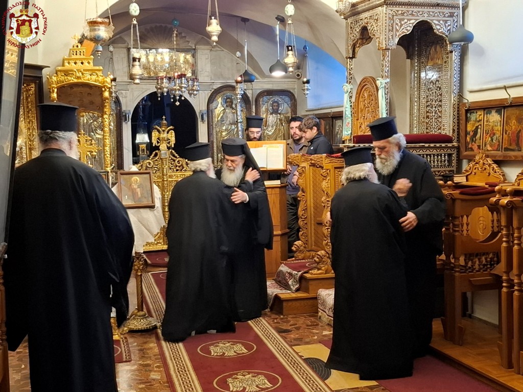 Τὸ ἑσπέρας τῆς Κυριακῆς τῆς Τυρινῆς, 9ης/22ας Φεβρουαρίου 2026, εἰς τὸν Πατριαρχικὸν καὶ Μοναστηριακὸν Ναὸν τῶν Ἁγίων Κωνσταντίνου καὶ Ἑλένης, μετὰ τὴν Ἀκολουθίαν τοῦ Μικροῦ Ἀποδείπνου, ἡ Α.Θ.Μ. ὁ Πατήρ ἡμῶν καί Πατριάρχης Ἱεροσολύμων κ.κ. Θεόφιλος ἀνέγνωσε τὴν συγχωρητικὴν εὐχὴν ἐν ὄψει τῆς ἀρχομένης τὴν αὔριον Ἁγίας καὶ Μεγάλης Τεσσαρακοστῆς.