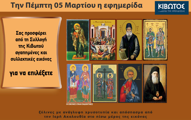 Την Πέμπτη 05 Μαρτίου, η εφημερίδα Κιβωτός της Ορθοδοξίας, κατόπιν μεγάλης ζήτησης, επανακυκλοφορεί ολόκληρη την Συλλογή της και κάθε εβδομάδα σας προσφέρει πολλές αγαπημένες εικόνες για να επιλέξετε