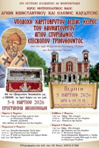 ΕπικαιρότηταΜητροπόλεις Υποδοχή χαριτοβρύτου δεξιάς χειρός του Αγίου Σπυρίδωνος Επισκόπου Τριμυθούντος στην Καρδίτσα από ikivotos 4 Μαρτίου 2026 Συντάκτης ikivotos 4 Μαρτίου 2026 24 Μητρόπολη Θεσσαλιώτιδος Μοιρασου 0 FacebookTwitterPinterestEmail Προηγούμενο άρθρο Την Πέμπτη, 5 Μαρτίου, κυκλοφορεί το νέο φύλλο της Εφημερίδας «Κιβωτός της Ορθοδοξίας» Επόμενο άρθρο Ο Μητροπολίτης Δημητριάδος Ιγνάτιος στο Διεθνές Συνέδριο της Βοστώνης για τον μακαριστό Αναστάσιο ΔΕΙΤΕ ΕΠΙΣΗΣ Εκδήλωση Βυζαντινής Μουσικής στη Δράμα Ελληνικός Ερυθρός Σταυρός: Τι πρέπει να περιλαμβάνει ένα... Μαθητικό Σκακιστικό Πρωτάθλημα στο Αρκαλοχώρι Ο Β΄ Κατανυκτικός Εσπερινός στην Καρδίτσα Ιερά Αγρυπνία επί τη ανακομιδή των ιερών λειψάνων... Ο Μητροπολίτης Δημητριάδος Ιγνάτιος στο Διεθνές Συνέδριο της...