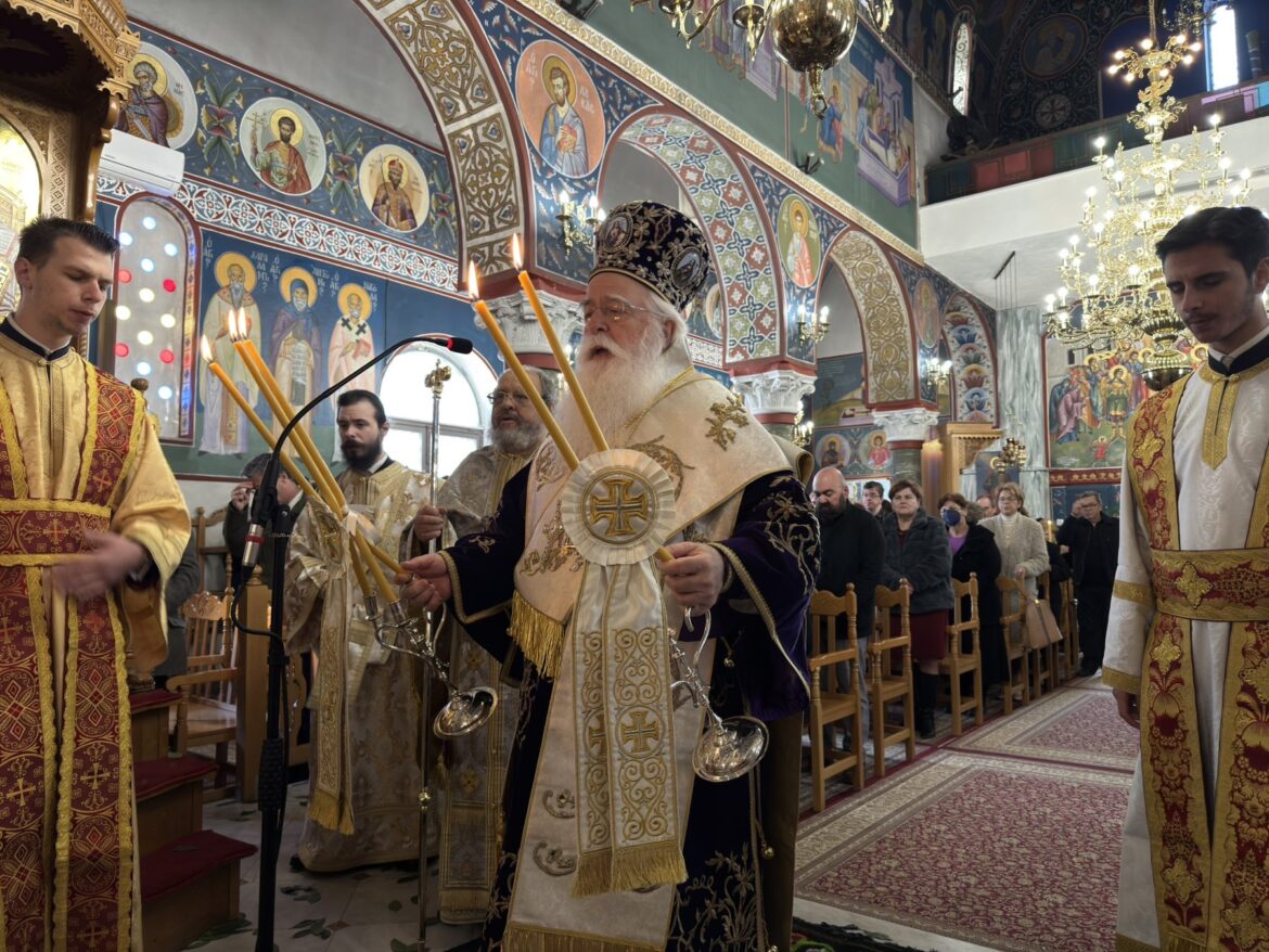 Στον Ιερό Ναό Αγίου Γεωργίου Νέας Αγχιάλου λειτούργησε σήμερα, Κυριακή 22/3, Δ΄ Κυριακή των Νηστειών της Αγίας και Μεγάλης Τεσσαρακοστής, ο Σεβ. Μητροπολίτης Δημητριάδος κ. Ιγνάτιος.