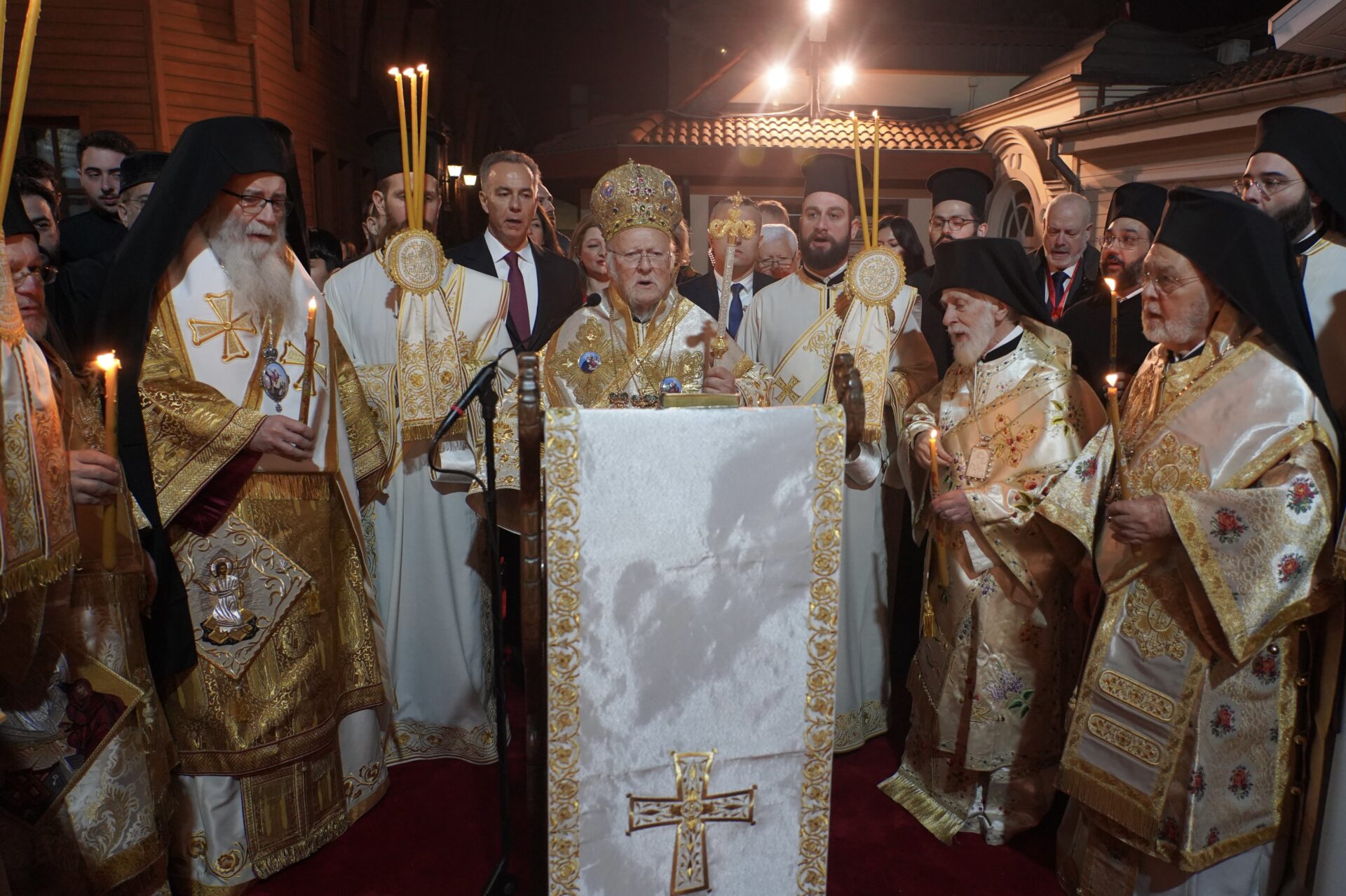 Η Α.Θ. Παναγιότης ο Οικουμενικός Πατριάρχης κ.κ. Βαρθολομαίος προέστη τα μεσάνυχτα του Μ. Σαββάτου της τελετής της Αναστάσεως στον αυλόγυρο του Πατριαρχείου, περιστοιχιζόμενος από τους Σεβ. Μητροπολίτες Προικοννήσου κ. Ιωσήφ, Φιλαδελφείας κ. Μελίτωνα, Μυριοφύτου και Περιστάσεως κ. Ειρηναίο και Μύρων κ. Χρυσόστομο, καθώς και από τους κληρικούς της Πατριαρχικής Αυλής.