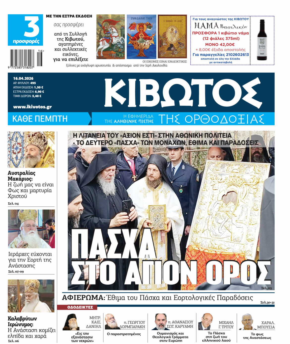 Την Πέμπτη της Διακαινησίμου 16 Απριλίου η εφημερίδα Κιβωτός της Ορθοδοξίας κατόπιν μεγάλης ζήτησης, επανακυκλοφορεί ολόκληρη την Συλλογής της και κάθε εβδομάδα σας προσφέρει πολλές αγαπημένες εικόνες για να επιλέξετε. Οι εικόνες που απεικονίζονται είναι ενδεικτικές, υπάρχει μεγάλη ποικιλία εικόνων, αναζητήστε στα περίπτερα την πολύτιμη εικόνα για εσάς!