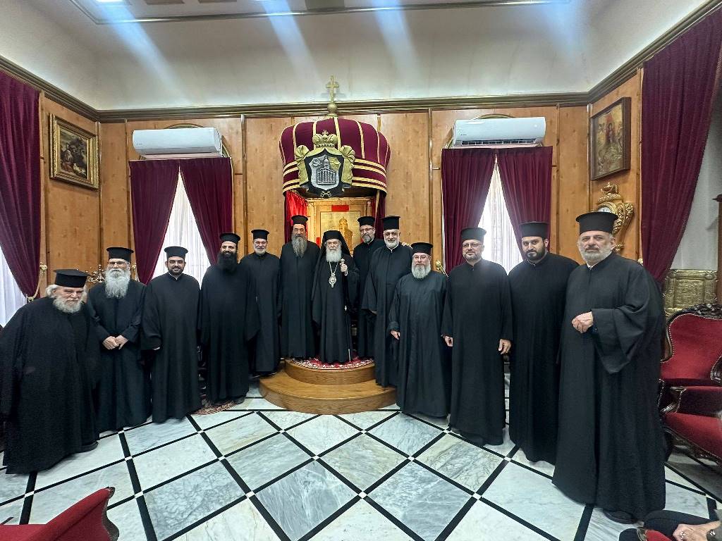 Οὗτοι ὑπέβαλαν τὸν χαιρετισμὸν αὐτῶν ἐπὶ τῇ διαγενομένῃ ἑορτῇ τοῦ Πάσχα εἰς τὸν Μακαριώτατον καὶ ὡμίλησαν εἰς Αὐτὸν ἐπὶ τοῦ τρόπου τῶν ἑορτῶν τῆς Μεγάλης Ἑβδομάδος καὶ τοῦ Πάσχα ὑπὸ τὸ Φῶς τῆς προσφάτου πολεμικῆς καταστάσεως καὶ τῆς συμφωνηθείσης μετ’ αὐτὴν ἐκεχειρίας εἰς τὸ βόρειον Ἰσραήλ, ἐγγίζοντος τὸν Λίβανον. Ὁ Μακαριώτατος ηὐλόγησεν αὐτοὺς καὶ ἐπῄνεσε τὸν Σεβασμιώτατον καὶ τοὺς ἱερεῖς διά τὸν ζῆλον αὐτῶν εἰς τὴν ἐπιτέλεσιν τοῦ Ἀρχιερατικοῦ καὶ τῶν Ἱερατικῶν αὐτῶν καθηκόντων εἰς ἑκάστην ἐνορίαν τῆς Πτολεμαΐδος – Ἄκκρης.