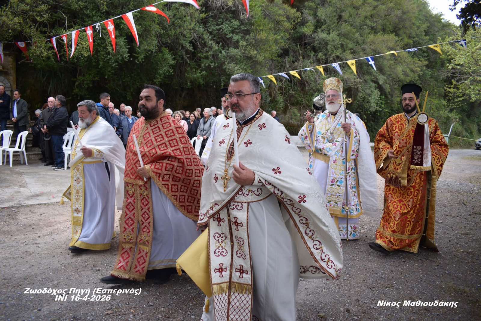 Σε Αναστάσιμο κλίμα, τελέστηκε ο Πανηγυρικός εσπερινός στην Ζωοδόχο Πηγή στο Ίνι Μονοφατσίου την Πέμπτη της Διακαινησίμου, 16 Απριλίου 2026. Ο Σεβασμιώτατος Ποιμενάρχης μας κ. Ανδρέας, χοροστάτησε του Εσπερινού, ευλόγησε τους προσφερόμενους άρτους και ομίλησε καταλλήλως στο εκκλησίασμα. Τέλος, ο Σεβασμιώτατος απένειμε το μετάλλιο του Αγίου Ανδρέα Αρχιεπισκόπου Κρήτης και της Αγίας Μαρίνας, στον Συνταξιούχο Δάσκαλο και επι εξήντα έτη Ιεροψάλτη της ενορίας Ινίου, κ. Ιωάννη Βελεγράκη, ως ένδειξη ευχαριστίας για την προσφορά του.