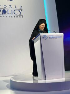 Τη σημασία διαφύλαξης της ειρήνης και της κοινωνικής δικαιοσύνης στο σημερινό παγκόσμιο περιβάλλον που κλονίζεται, υπογράμμισε η Α.Θ. Παναγιότης ο Οικουμενικός Πατριάρχης κ.κ. Βαρθολομαίος την Παρασκευή, 24 Απριλίου 2026, στην επίσημη ομιλία του στον 18ο κύκλο του Διεθνούς Συνεδρίου “World Policy Conference”, που πραγματοποιείται στην πόλη Chantilly της Γαλλίας.
