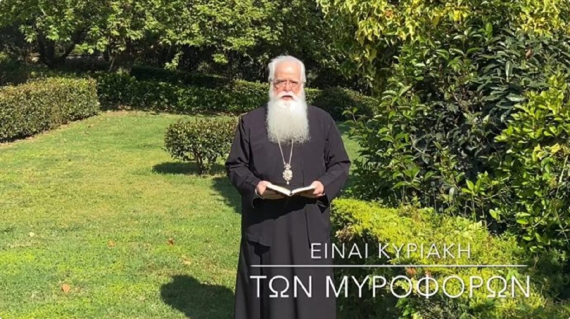 “Χριστός Ανέστη! Κυριακή των Μυροφόρων. Γυναίκες είναι αυτές που τολμούν, παρόλο τον φόβο, να ξεκινήσουν για τον τάφο του Ιησού. Ξέρουν, ότι ο λίθος είναι μέγας και δύσκολα μπορούν αυτές να τον μετακινήσουν. Κι όμως θέλουν να κάνουν το καθήκον τους, γιατί αγαπούν τον Ιησού. Η αγάπη νικάει τον φόβο! Έχει τόλμη! Και ενώ αναρωτιούνται ποιός θα αποκυλίσει τον λίθο; Τελικά ο λίθος είναι αποκεκυλισμένος. Το μνημείο είναι άδειο. Η Αγάπη νίκησε τον θάνατο! Αυτές πρώτες γίνονται αγγελιοφόροι της Ανάστασης του Χριστού! Γιατί ο θάνατος αντιμετωπίζεται με Αγάπη. Η Αγάπη τον νικάει και ο Θεός ανταποκρίνεται στην Αγάπη, δίνοντας στον άνθρωπο την Ανάσταση, την Αθανασία, αυτή που μας χάρισε ο Χριστός! Οι Μυροφόρες μας έφεραν το άγγελμα της Αναστάσεως. Οι Μαθητές μαρτύρησαν για την Ανάσταση. Σήμερα η Ανάσταση του Χριστού μας πλημμυρίζει χαρά, γιατί ξέρουμε ότι τελικά με την Αγάπη νικήσαμε τον θάνατο! Με την Αγάπη του Χριστού κερδίσαμε την Αθανασία! Χριστός Ανέστη!”