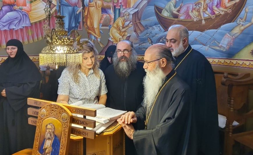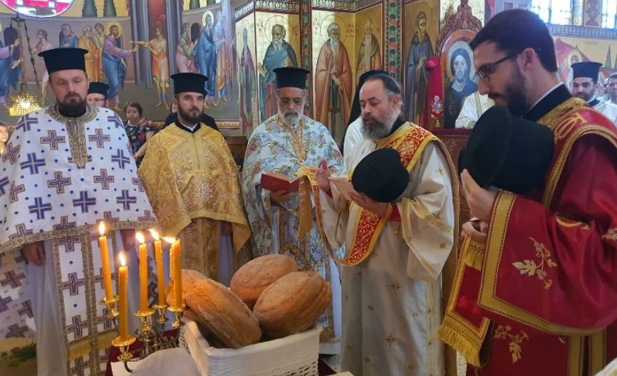 Εὐλογητός ὁ Θεός καί Πατήρ τοῦ Κυρίου ἡμῶν Ἰησοῦ Χριστοῦ, ὁ κατά τό πολύ αὐτοῦ ἔλεος συνάξας πάντας ἡμᾶς ἐν τῷ ἱερῷ τούτῳ τῆς ἁγιογραφικῆς Καπερναούμ τόπῳ, ἵνα ἑορτάσωμεν τήν μνήμην τῶν Ἁγίων ἐνδόξων καί πανευφήμων Ἀποστόλων καί πρωτοκορυφαίων Πέτρου καί Παύλου, τῶν «διῃρημένων τοῖς σώμασι καί ἡνωμένων τῷ Πνεύματι».