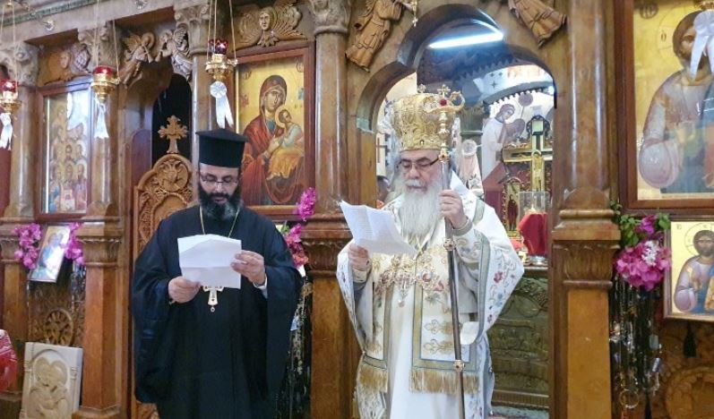 Ἐνταῦθα ἀνήμερα τῆς ἑορτῆς προεξῆρξε τῆς θείας Λειτουργίας ὁ Μακαριώτατος Πατήρ ἡμῶν καί Πατριάρχης Ἱεροσολύμων κ.κ. Θεόφιλος, συλλειτουργούντων Αὐτῷ τῶν Σεβασμιωτάτων Ἀρχιερέων, Μητροπολίτου Ναζαρέτ κ. Κυριακοῦ καί τῶν Ἀρχιεπισκόπων Κωνσταντίνης κ. Ἀριστάρχου καί Ἱεραπόλεως κ. Ἰσιδώρου, Ἁγιοταφιτῶν Ἱερομονάχων, ὧν πρῶτος ὁ Γέρων Καμαράσης Ἀρχιμανδρίτης π. Νεκτάριος, τοῦ Ἀρχιδιακόνου Μάρκου καί τοῦ Ἱεροδιακόνου π. Εὐλογίου, Ἀραβοφώνων Πρεσβυτέρων τῶν ὁμόρων περιοχῶν τῆς Ἱερᾶς Μητροπόλεως Ναζαρέτ, ψαλλούσης τῆς Βυζαντινῆς παιδικῆς χορῳδίας τοῦ Μπέρ – Σέβα ὑπό τόν Σεβασμιώτατον Ἀρχιεπίσκοπον Μαδάβων κ. Ἀριστόβουλον δεξιά ἑλληνιστί καί τῆς ἐξ Ἄκκρης Βυζαντινῆς χορῳδίας ὑπό τόν Ἀρχιμανδρίτην π. Φιλόθεον ἀραβιστί ἀριστερά, τῇ εὐσεβεῖ προσευχητικῇ συμμετοχῇ Ἀραβοφώνου καί Ἑλληνοφώνου ποιμνίου ἐκ τῆς Γαλλιλαίας καί ἀλλαχόθεν.