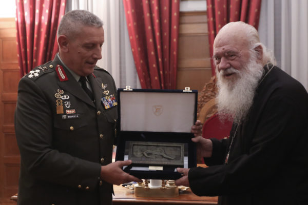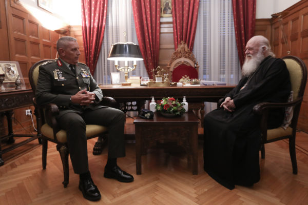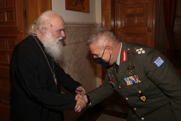 Mε τον Αρχηγό Γ.Ε.ΕΘ.Α. κ. Κωνσταντίνο Φλώρο συναντήθηκε σήμερα το απόγευμα στην Αρχιεπισκοπή ο Αρχιεπίσκοπος Αθηνών και Πάσης Ελλάδος κ. Ιερώνυμος. Ο κ. Φλώρος εξέφρασε την χαρά του για την συνάντηση και αναφέρθηκε στην κύρια αποστολή των Ενόπλων Δυνάμεων, η οποία είναι η υπεράσπιση της εδαφικής ακεραιότητας και της εθνικής ανεξαρτησίας.